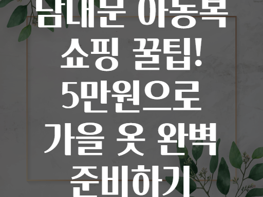 안녕하세요! 가을이 성큼 다가오면서 우리 아이들 옷 준비에 고민이 많으시죠? 🍁 특히 아이 옷값은 금방 올라가고, 매번 새로 사자니 부담스럽고…🤯 그래서 오늘은 남대문시장에서 단돈 5만원으로 아이 가을 옷을 똑똑하게 쇼핑하는 방법을 낱낱이 알려드릴게요! 🎉👖