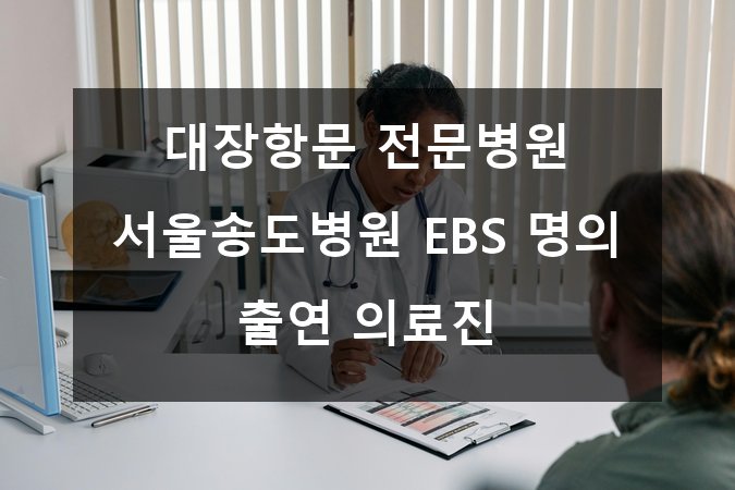 ✔ 서울송도병원은 믿을 수 있는 대장항문 전문 병원이며 EBS 명의 출연 의료진들이 직접 진료해 더욱 안심됩니다!