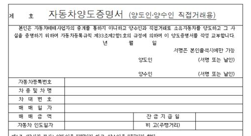 서류 3장(폐지완료 시) 이 필요합니다. 이륜자동차사용폐지증명서, 자동차양도증명서, 양도인 신분증 사본 이 세 가지 서류를 무조건 받아오셔야 합니다. 양도 증명서에는 양도인 도장이 찍혀 있는지 확인하시고 받아오시면 되겠습니다. 자필서명이면 자필서명 확인서도 받아야 하니 좀 번거로워울 수 있습니다.
