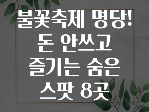 불꽃축제 명당! 돈 안 쓰고 즐기는 숨은 스팟 8곳 🎆✨