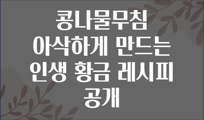 🏷️ 요약 태그: #콩나물무침 #아삭하게 #인생레시피 #집반찬 #한국음식 #간단레시피 #밑반찬