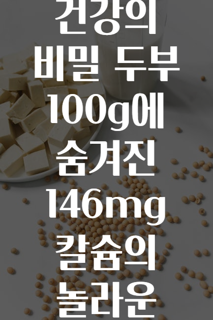 두부 한 모(100g)에는 성인 여성의 하루 권장 칼슘 섭취량의 약 15%가 포함되어 있어요. 칼슘은 뼈 형성과 유지에 필수!